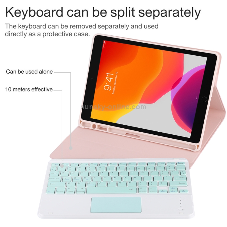 Teclado Bluetooth Tg-102Bc desmontable con funda de cuero para iPad 10,2 / iPad Air (2019) (Rosa)