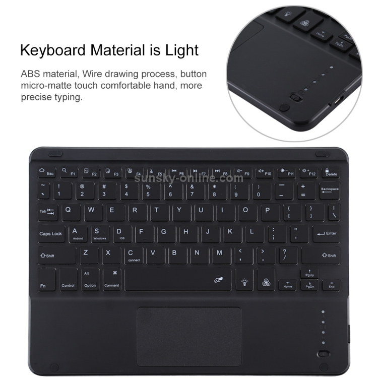 Teclado Bluetooth Tg-102Bcs + Funda Cuero Microfibra para iPad 10,2 / iPad Air (2019) con Panel Táctil Retroiluminado (Negro)