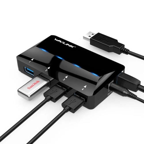 Adaptador de Carga Rápida Wavlink Wl-Uh3042P1 2.4A Hub USB3.0 de 4 Puertos para Teclado y Ratón (Enchufe de la UE)
