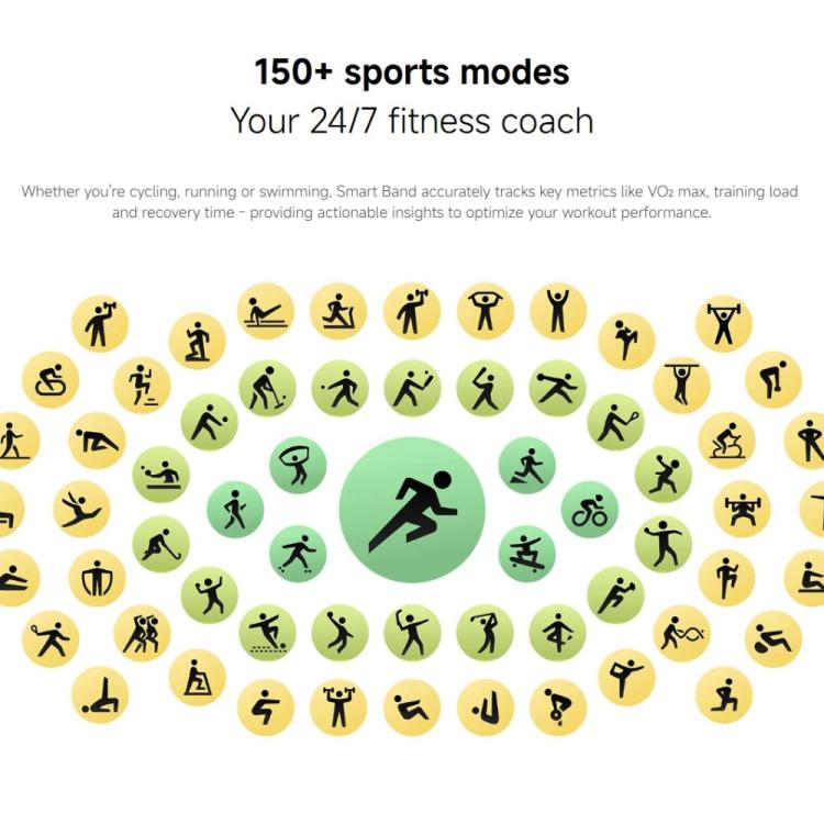 3. Más de 150 modos deportivos, desde ciclismo y carrera hasta natación en interiores y baile, permiten registrar con mayor precisión diversos datos, como el consumo máximo de oxígeno, el tiempo de recuperación, el efecto del entrenamiento, la carga de entrenamiento y otros indicadores avanzados.