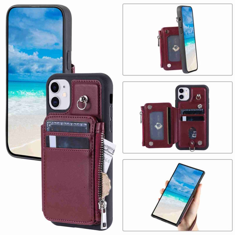 Estuche para Teléfono iPhone 11 con Rfid Ranuras para Tarjetas y Cremallera (Rojo Vino)