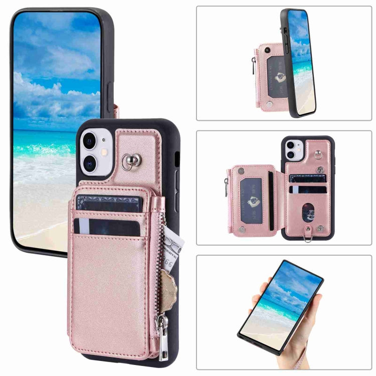 Estuche para teléfono iPhone 11 con RFID ranuras para tarjetas y cremallera (Oro Rosa)