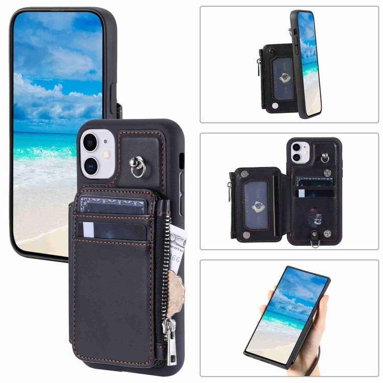 Estuche para Teléfono iPhone 11 con Rfid Ranuras para Tarjetas con Cremallera (Negro)