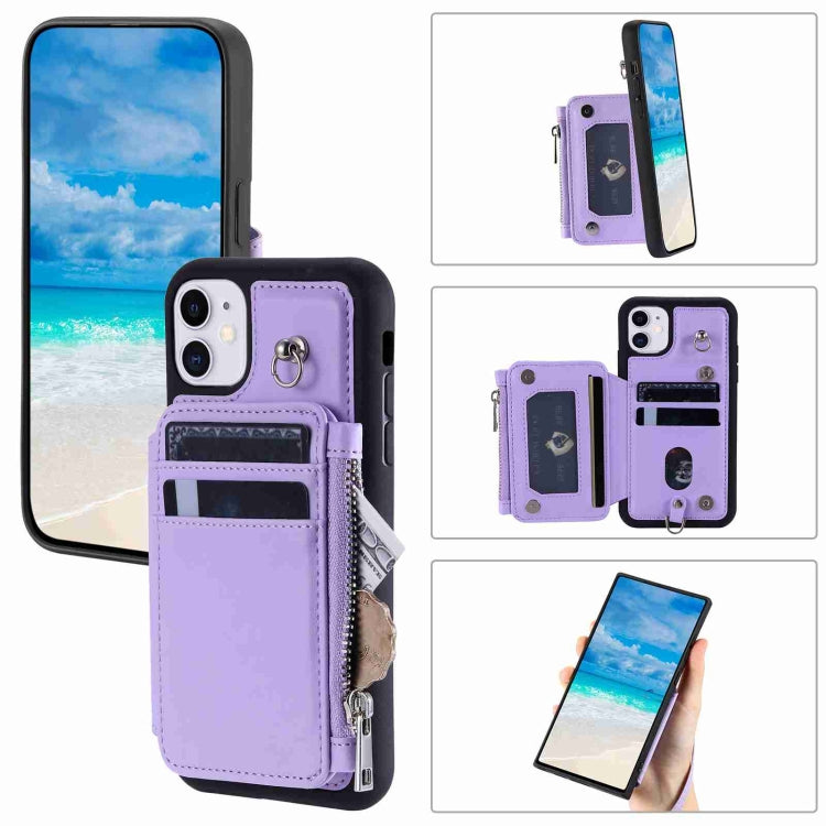 Estuche para Teléfono iPhone 11 Rfid con Ranuras para Tarjetas con Cremallera (Púrpura)