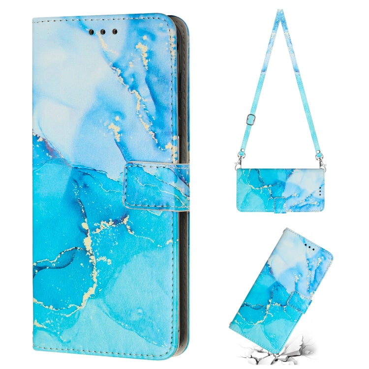 Funda de Teléfono para iPhone 13 Pro Crossbody Cuero Patrón Mármol Pintado (Azul Verde)