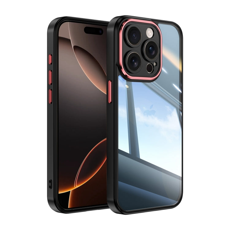 Funda híbrida Acrílico TPU iPhone 16 Pro Max a prueba de golpes (Negro y Rojo)