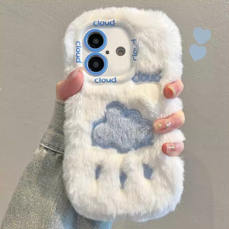 Funda para iPhone 16 Bordado de Felpa Cobertura Total (Nube Blanca y Azul)