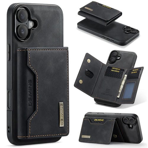 Funda de Cuero Tipo Billetera Dg.Ming M2 para iPhone 16 Tres Pliegues (Negra)