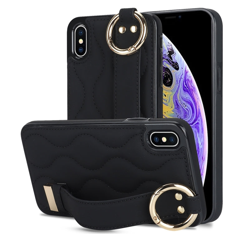 Funda para Teléfono iPhone Xs / X Antideslizante Pu con Anillo y Muñequera (Negro)