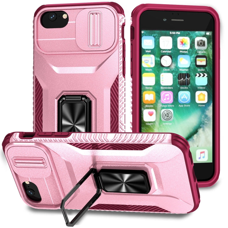 Estuche para Teléfono iPhone 7 con Soporte Deslizante para Levas (Rosa + Rojo Rosa)