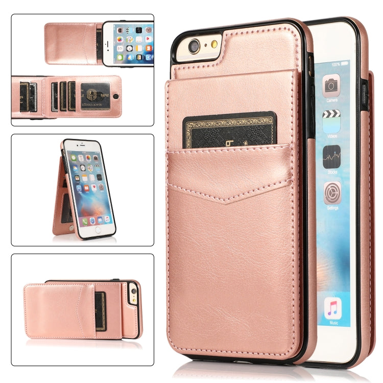 Estuche Protector PC + TPU para iPhone 6 con Soporte y Ranuras para Tarjetas (Oro Rosa)