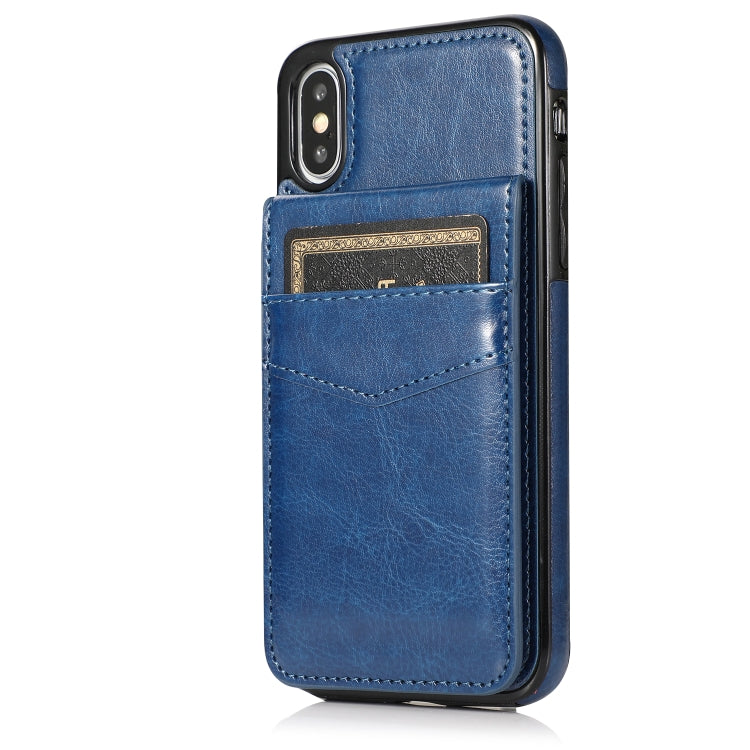 Funda Protectora para iPhone Xs Max PC + TPU con Soporte y Ranuras para Tarjetas (Azul)