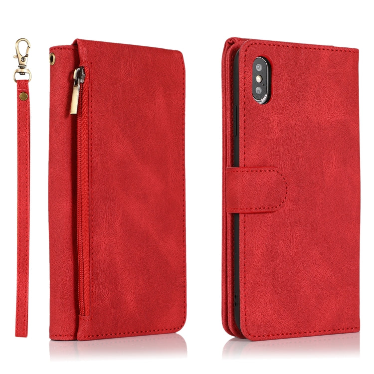 Funda Protectora para iPhone Xs Max PC + TPU con Soporte y Ranuras para Tarjetas (Rojo)
