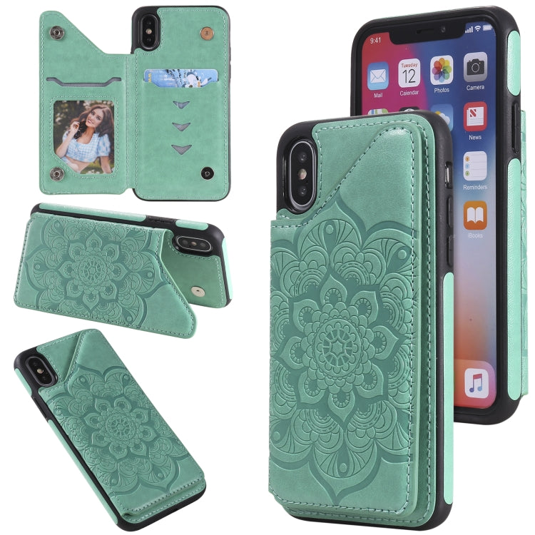 Funda Protectora iPhone X Xs Estampado Flores Soporte Tarjetas Marco Fotos (Verde)