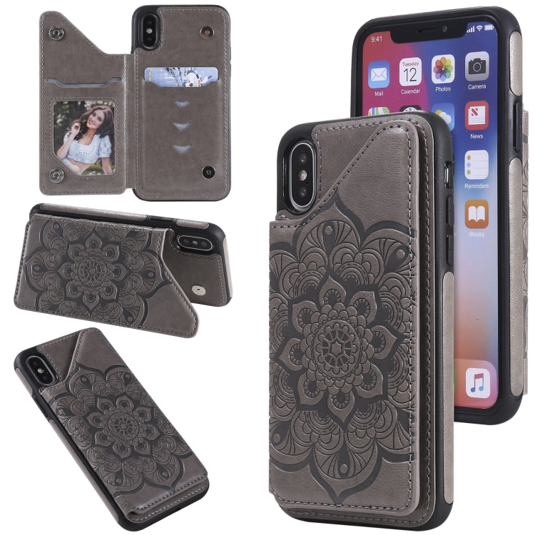 Funda Protectora para iPhone X Xs con Soporte Ranuras Tarjetas Marco Fotos (Gris)