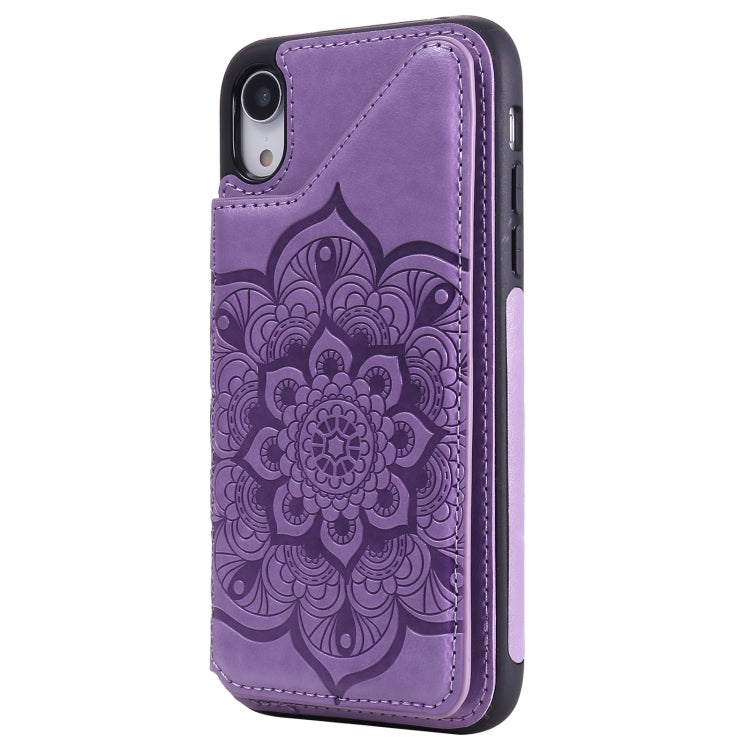 Funda Protectora iPhone Xr Patrón Flores Soporte Ranuras Tarjetas Marco Fotos (Púrpura)
