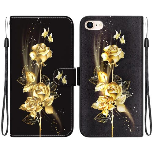 Funda para Teléfono iPhone SE 2022/SE 2020 Cuero Dibujo Cristal (Mariposa Dorada Rosa)