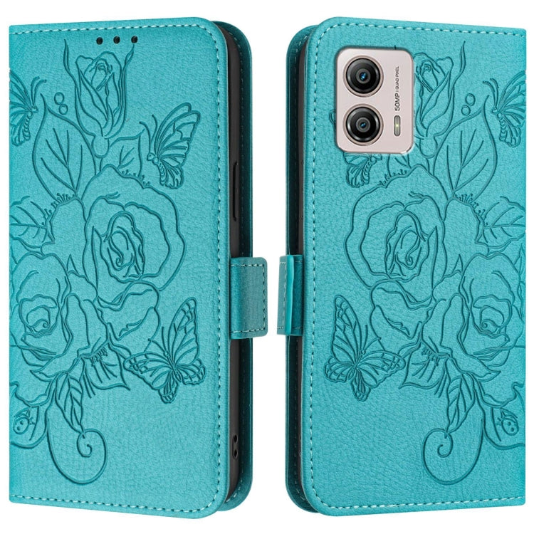 Funda de Cuero Antirrobo RFID con Relieve Rosa para Motorola Moto S30 Pro 5G (Verde)