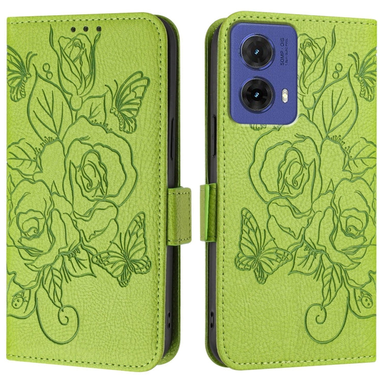 Funda de Cuero Antirrobo RFID con Relieve Rosa para Motorola Moto G85 5G (Verde)