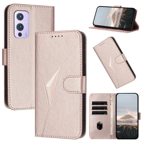 Funda de Cuero OnePlus 9 con Cierre de Hebilla y Diseño Triangular (Oro Rosa)