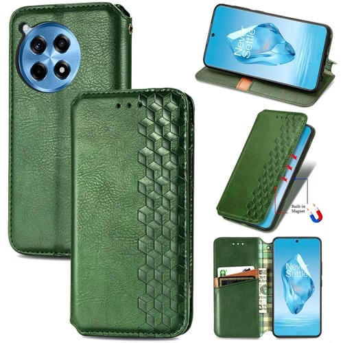 Funda de Cuero Magnética OnePlus Ace 3 Pro Diseño Cuadrícula Cúbica (Verde)
