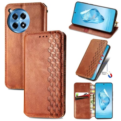 Funda de Cuero Magnética OnePlus Ace 3 Pro Diseño Cuadrícula Cúbica (Marrón)