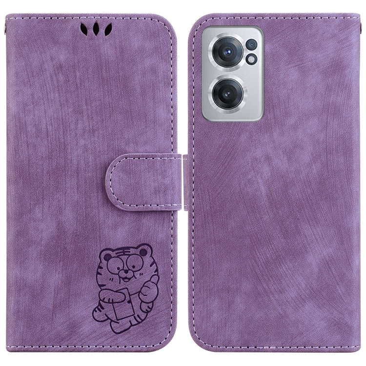 Funda para OnePlus Nord Ce 2 5G Cuero con Relieve Little Tiger (Púrpura)