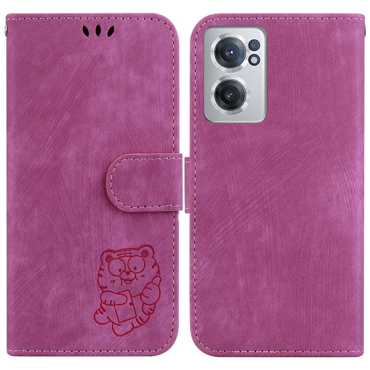Funda para OnePlus Nord Ce 2 5G de Cuero con Relieve Little Tiger (Rojo Rosa)