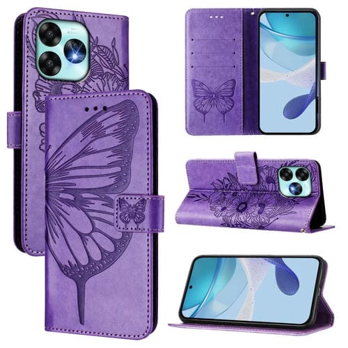 Funda de Cuero para Umidigi Bison X20 con Mariposa en Relieve (Morado Claro)