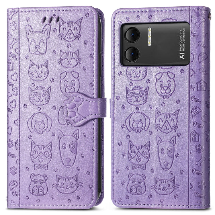 Estuche para Doogee X98 Pro y X98 de Cuero en Relieve para Gatos y Perros (Púrpura)