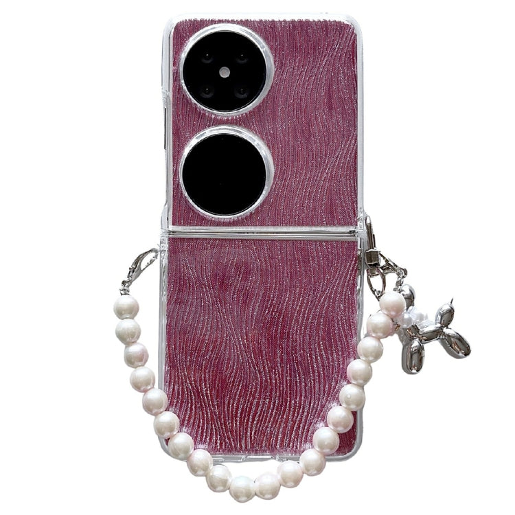 Estuche para Huawei Pocket 2 Cobertura Total Bordado con Cadena de Cuentas (Rosa)