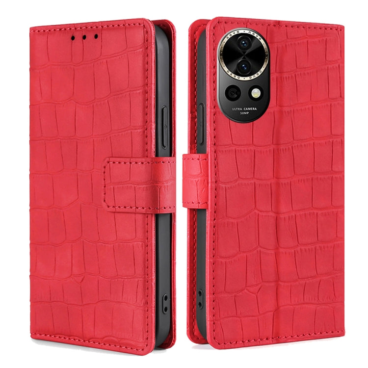 Funda para Huawei Nova 12 5G de Cuero con Cierre Magnético y Piel de Cocodrilo (Rojo)