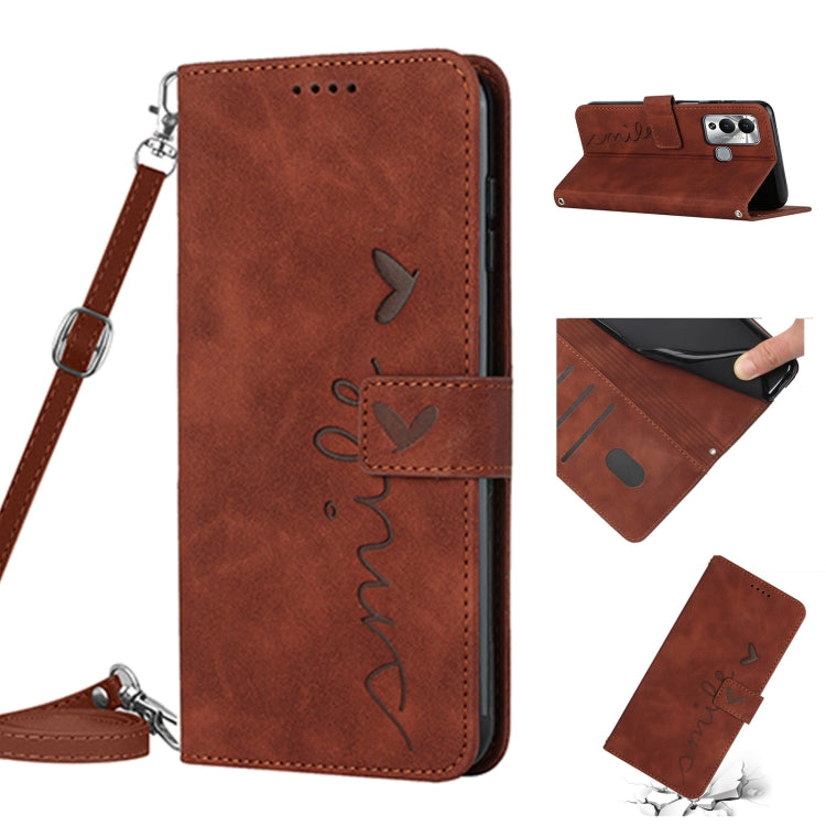 Funda de Cuero con Cordón para Infinix Note 12 Vip Skin Feel Heart Pattern (Marrón)