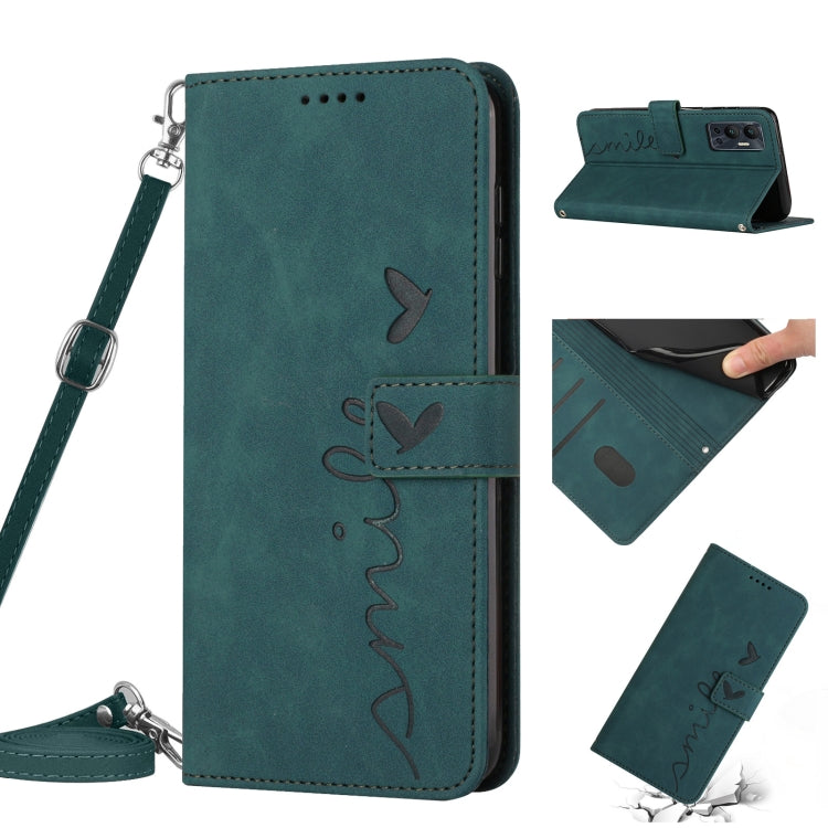 Funda de Cuero con Cordón para Infinix Note 12 Vip Skin Feel Heart Pattern (Verde)