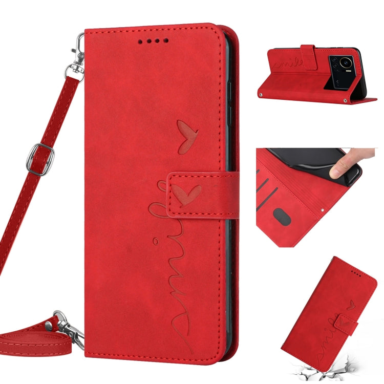 Funda de Cuero para Infinix Note 12 G96 Skin Feel con Patrón Corazón y Cordón (Rojo)