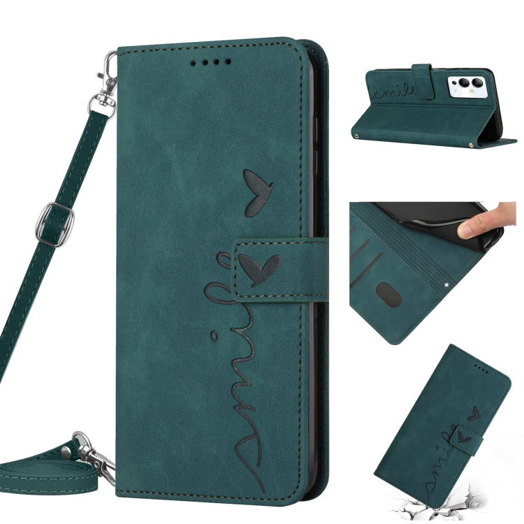 Funda de Cuero para Infinix Hot 12 Skin Feel con Patrón de Corazón y Cordón (Verde)