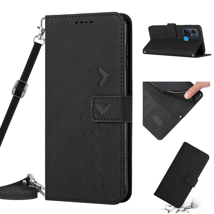 Funda de Cuero con Cordón para Infinix Smart 6 Plus Skin Feel Heart Pattern (Negro)