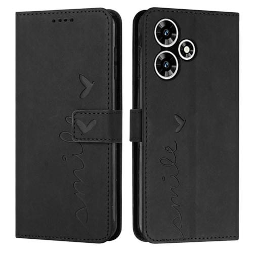 Funda de Cuero para Infinix Hot 30 Skin Feel con Patrón de Corazón (Negro)
