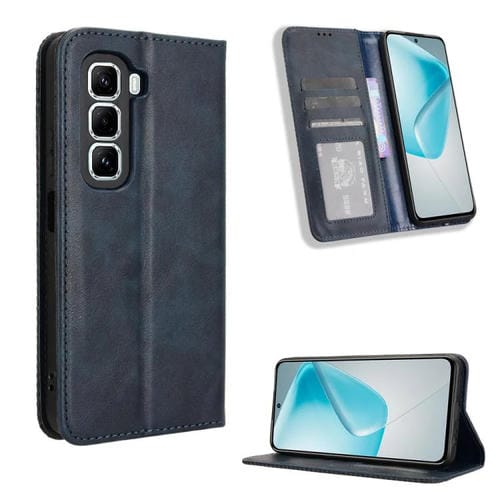 Funda de Cuero Retro con Hebilla Magnética para Infinix Hot 50 Pro+ 4G (Azul)