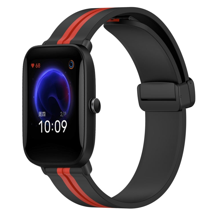 Correa de Reloj 20mm Amazfit Pop Silicona Cierre Magnético Plegable (Negro + Rojo)