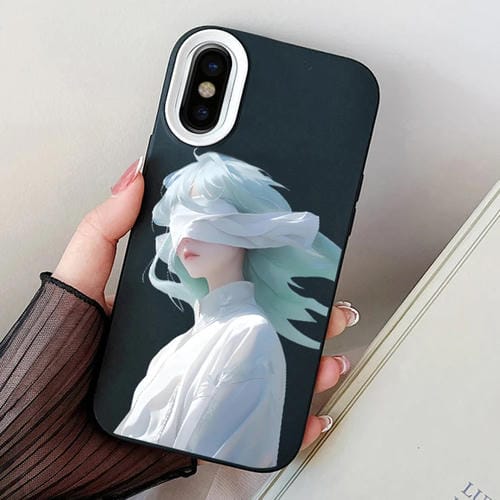 Estuche hĂbrido para telĂ©fono iPhone X Xs Blindfold Girl PC TPU (Negro)