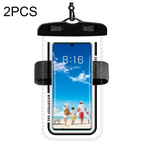 2 Pcs Brazalete Transparente Impermeable para Teléfono Celular Natación (Negro)
