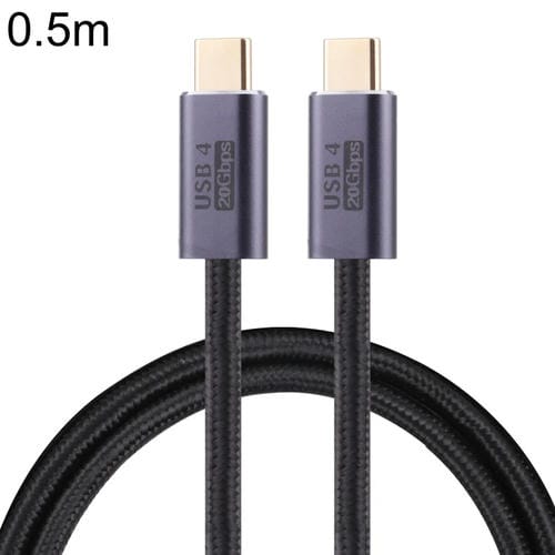 Cable de Datos USB 4 USB-C / Tipo-C Macho a USB-C / Tipo C Trenzado 20Gbps 0.5M (Negro)