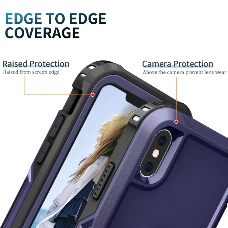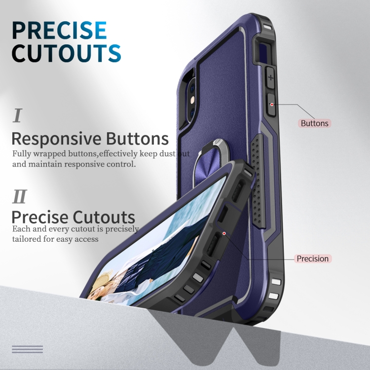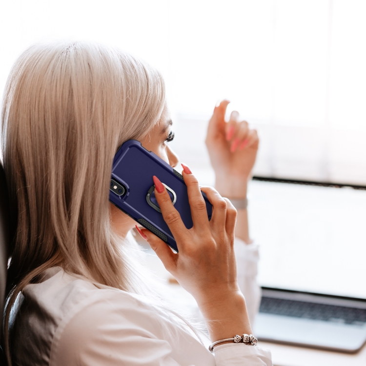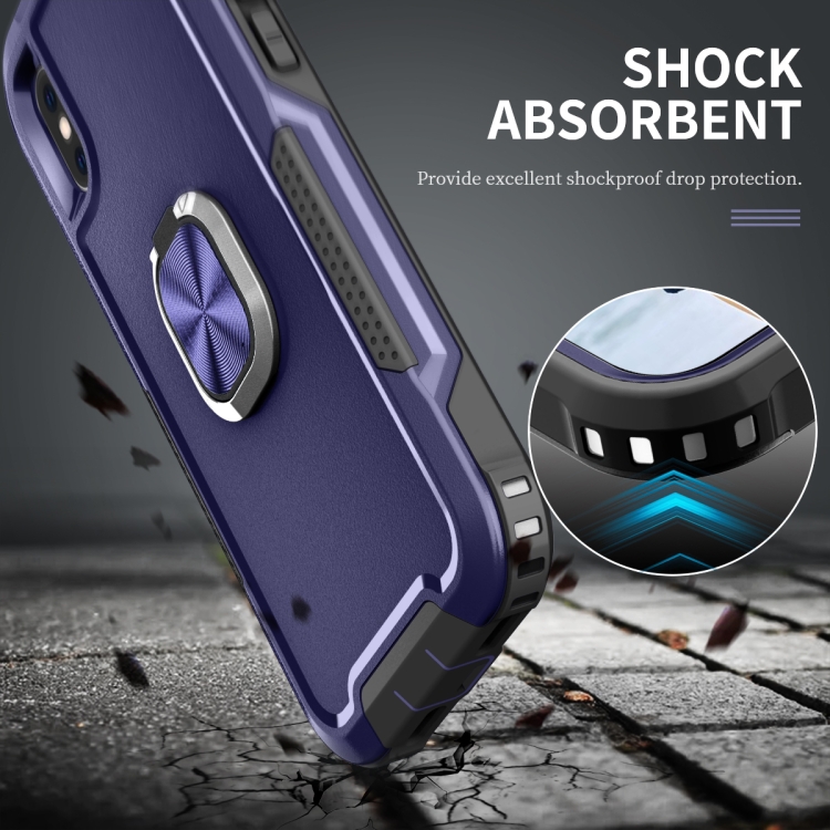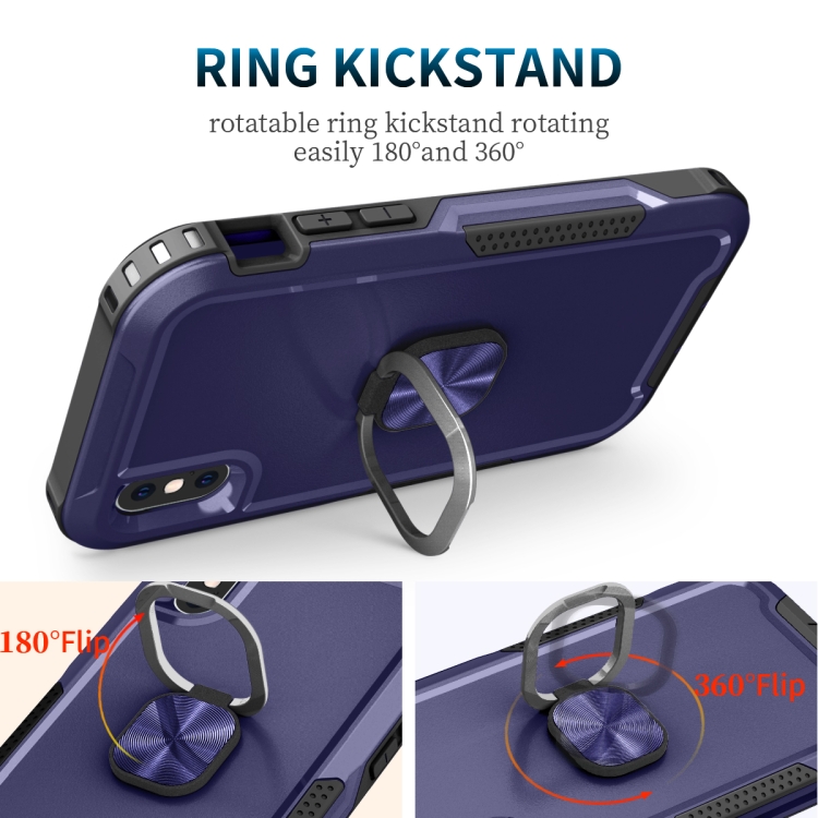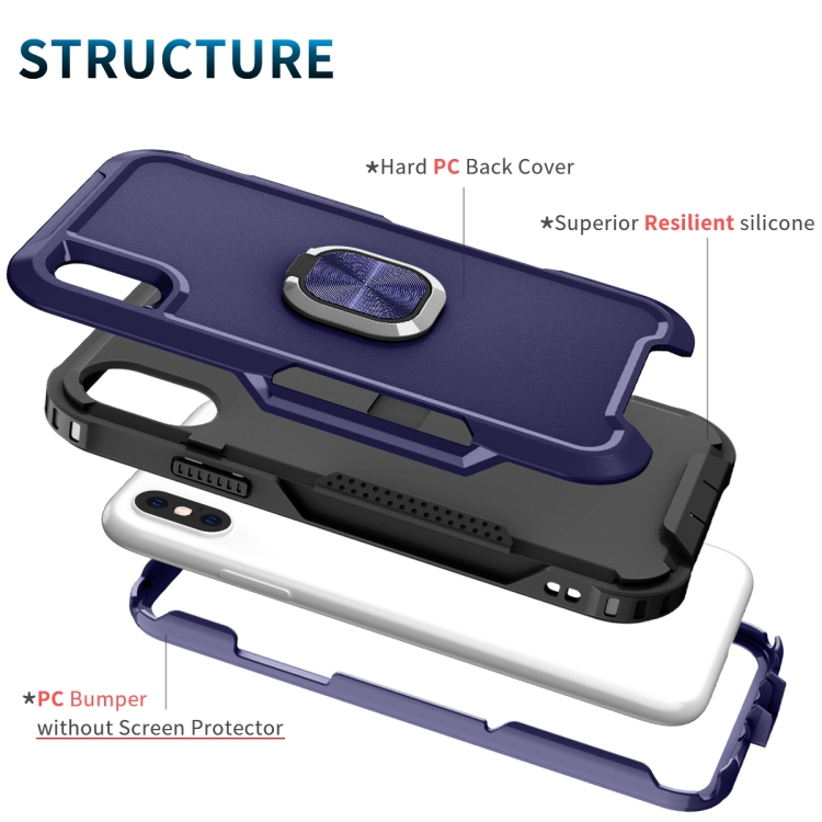 Funda 3 en 1 PC y TPU con Soporte de Anillo para iPhone Xs Max (Azul Marino)