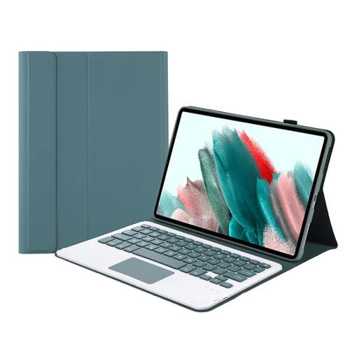 Funda de Cuero con Teclado Bluetooth y Touchpad A08-A para Samsung Galaxy Tab A8 2021 (Verde Oscuro)