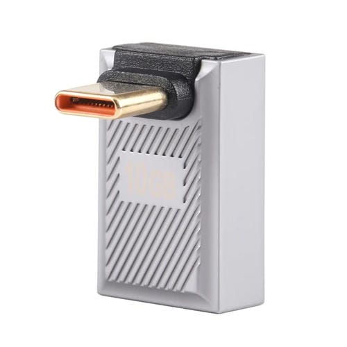 Adaptador de Carga USB-C Macho a USB Hembra 10 Gbps 90 Grados Curvatura Frontal (Plateado)