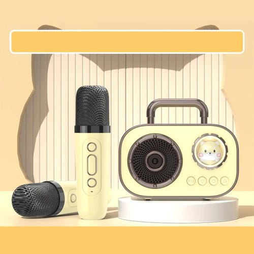 Altavoz Hifi Bluetooth 5.3 Compatible con FM con Micrófono de 2 Piezas (Amarillo)