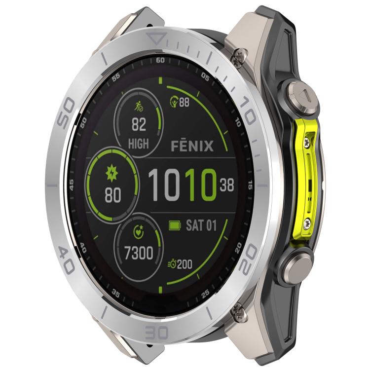 Anillo protector de acero inoxidable para reloj Garmin Tactix 8 AMOLED de 51 mm con diseño de zona horaria (gris plateado)