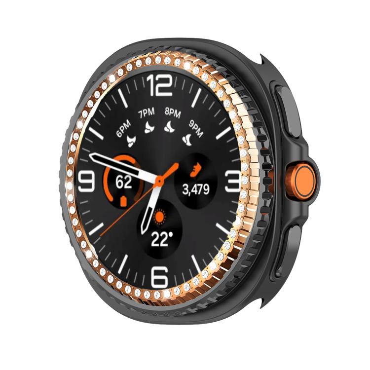 Anillo protector de metal con diamantes de una sola fila para Samsung Galaxy Watch8 Classic de 46 mm (oro rosa galvanizado)