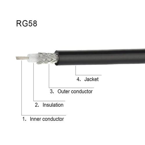 - Material del Cable: RG58, Cable coaxial de baja pérdida